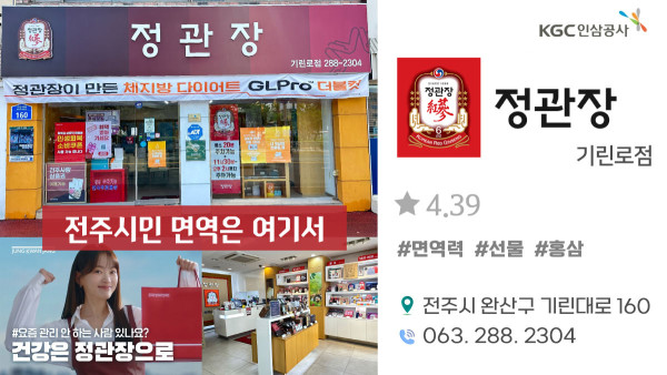 우리동네 목록 전주 정관장 2025-07-28 본문 전주시 완산구 기린대로 160 063 288 2304 “회사는 통신판매중개자로서 입점 판매자가 등록한 상품, 거래 정보 및 이용자 간 거래에 대해 어떠한 책임도 부담하지 않습니다.” 관련자료 목록