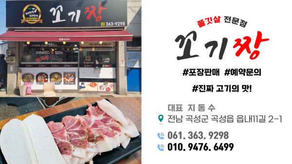 우리동네 목록 쫄깃살 전문점 고기짱 2025-08-22 본문 전남 곡성군 곡성읍 읍내11길 2-1 061 363 9298 “회사는 통신판매중개자로서 입점 판매자가 등록한 상품, 거래 정보 및 이용자 간 거래에 대해 어떠한 책임도 부담하지 않습니다.” 관련자료 목록