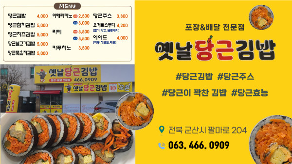 우리동네 목록 군산 옛날 당근 김밥 2025-09-05 본문 063 466 0909 “회사는 통신판매중개자로서 입점 판매자가 등록한 상품, 거래 정보 및 이용자 간 거래에 대해 어떠한 책임도 부담하지 않습니다.” 관련자료 목록